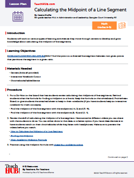 Students will work on various types of learning activities as they move through centers to develop and grow knowledge about calculating the midpoint of line segments.