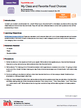 I scream, you scream, we all scream for….what? What is your favorite food? In this lesson, students will survey their classmates and record their favorite foods. They will use their collected data to write math questions that will be answered by a friend.