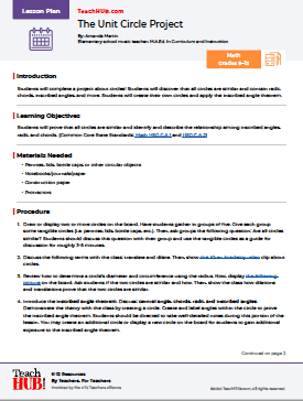 Students will complete a project about circles! Students will discover that all circles are similar and contain radii, chords, inscribed angles, and more. Students will create their own circles and apply the inscribed angle theorem.