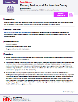 What do fission, fusion, and radioactive decay have in common? Students will discover how those terms change the composition of the nucleus within an atom when energy is released during this lesson.