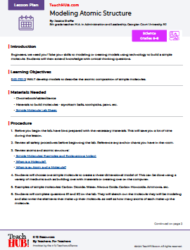 Engineers, we need you! Take your skills to modeling or creating models using technology to build a simple molecule. Students will then extend knowledge with critical thinking questions.