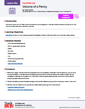 Volume is math, isn’t it? Well, math and science come together in this lab where students will figure out the volume of pennies with a hands-on activity.