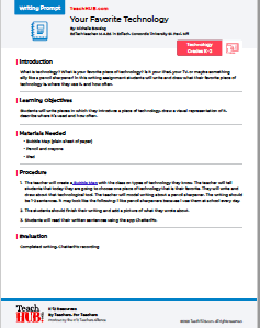 What is technology? What is your favorite piece of technology? Is it your iPad, your TV, or maybe something silly like a pencil sharpener! In this writing assignment students will write and draw what their favorite piece of technology is, where they use it, and how often.