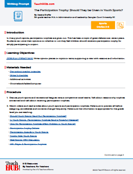 In many youth sports, participation trophies are given out. This has been a topic of great debate over recent years. Students can voice their opinions on whether or not they feel children should receive a participation trophy for simply participating in a sport.